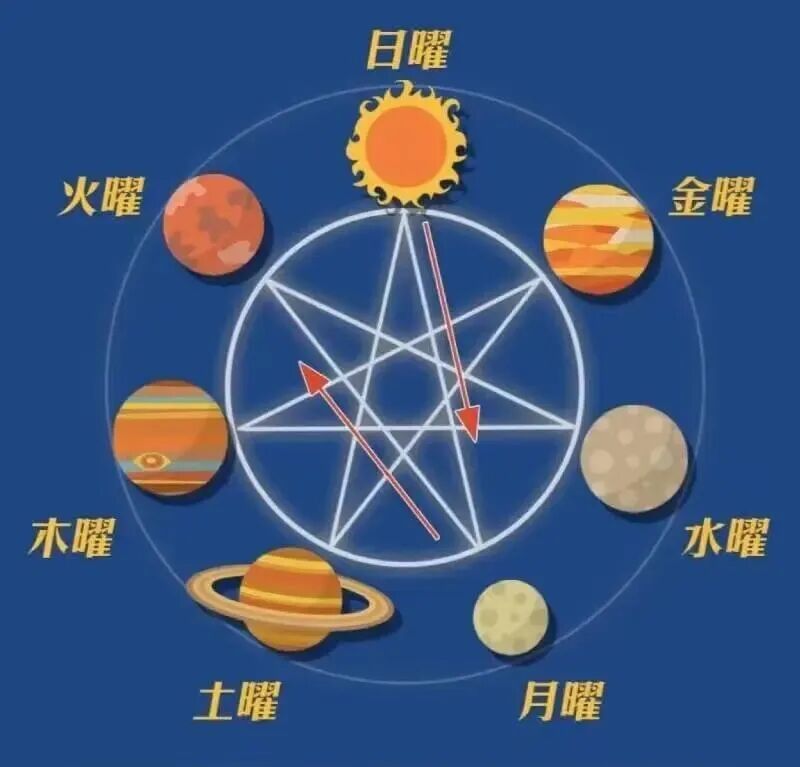 有趣的是,日语星期排列与中文的“金木水火土”顺序有所不同,这实际上反映了两种不同的思维逻辑: