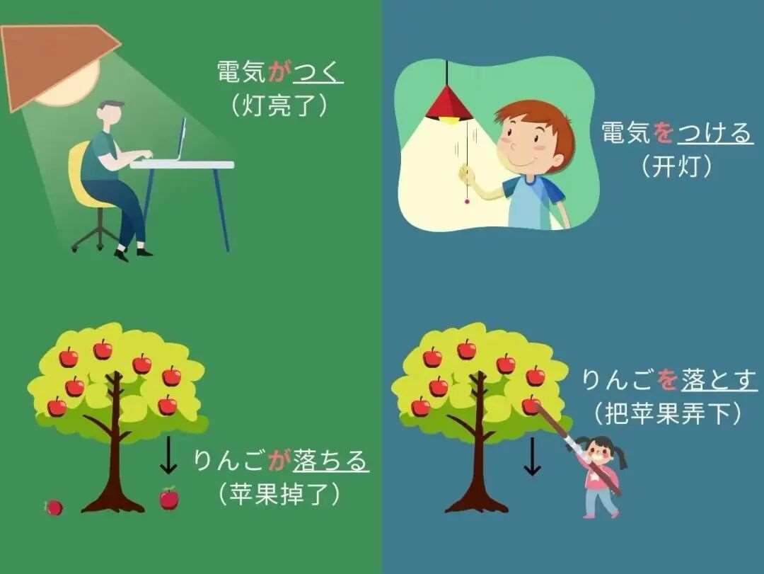 记住核心一点:他动词强调“人做什么”(用を),自动词描述“物怎样了”(用が)。